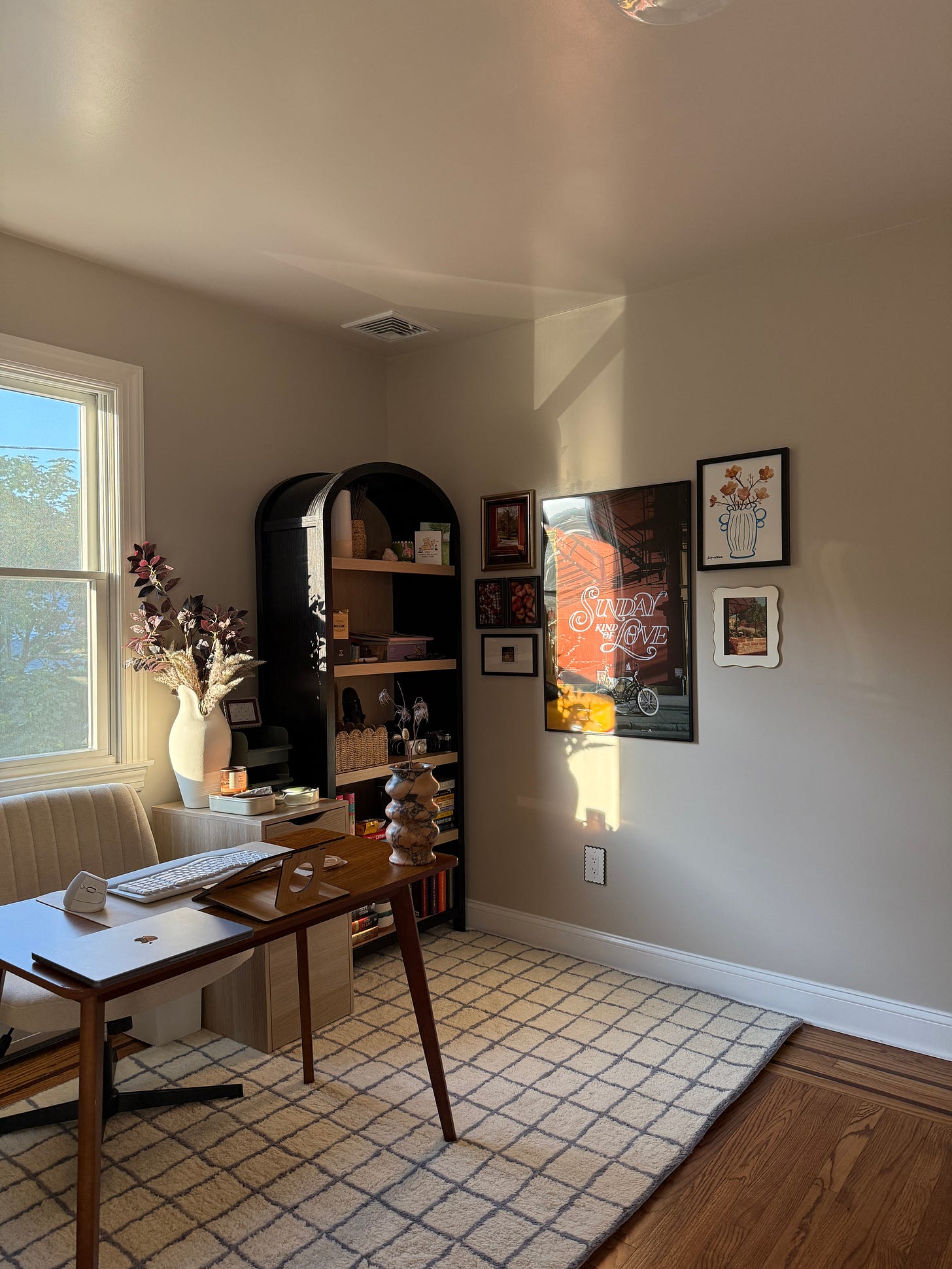 Bud vases > big vases for flowers: Get a bunch of flowers that make you happy (TJ’s truly the GOAT for these), and instead of having them in one vase in only one spot in your home, split the stems up into several bud vases and scatter them around! This method sparks a little delight, by brightening my mood seeing them everywhere throughout the day, instead of in just 1 corner.